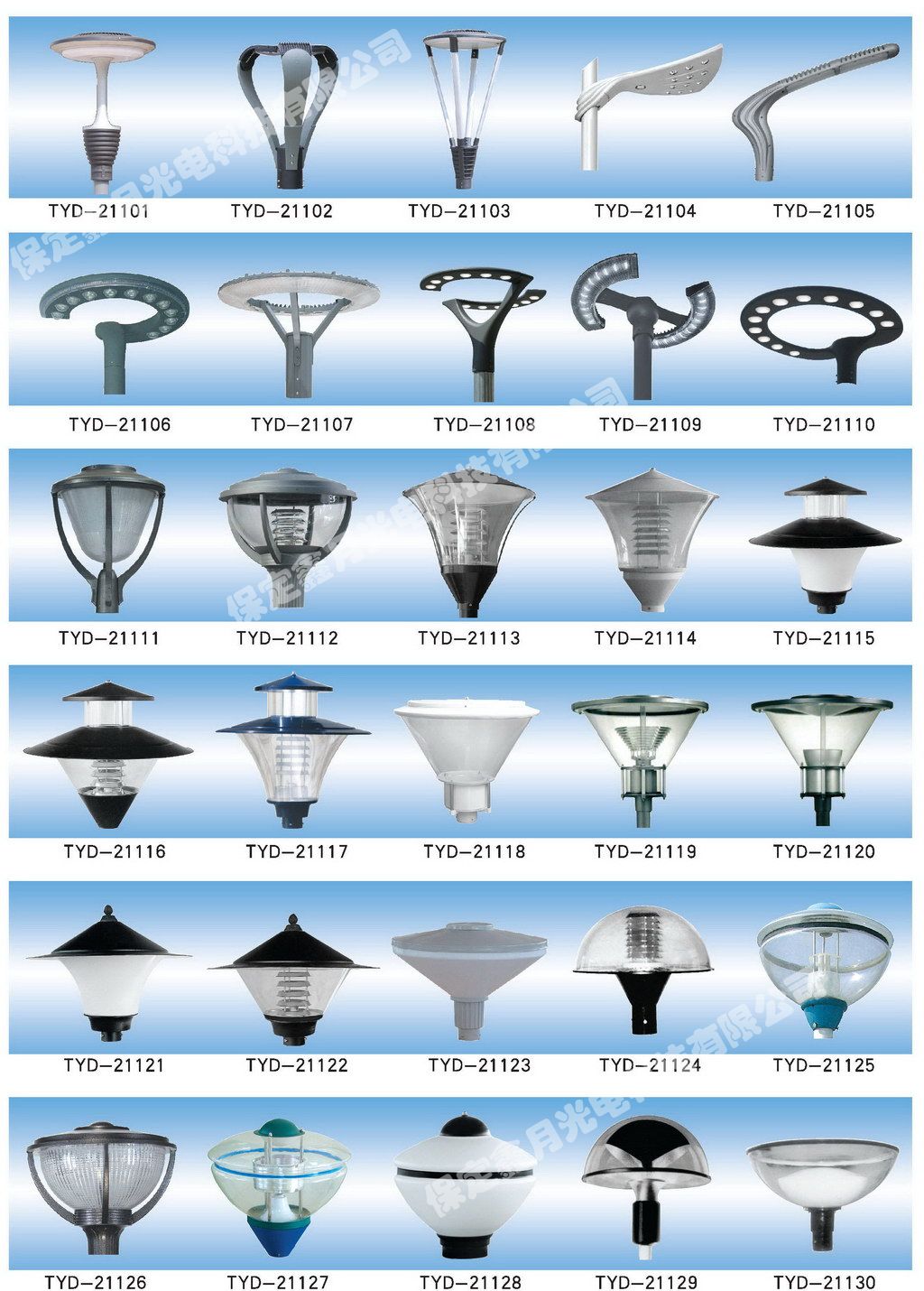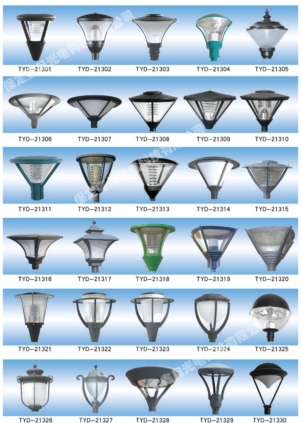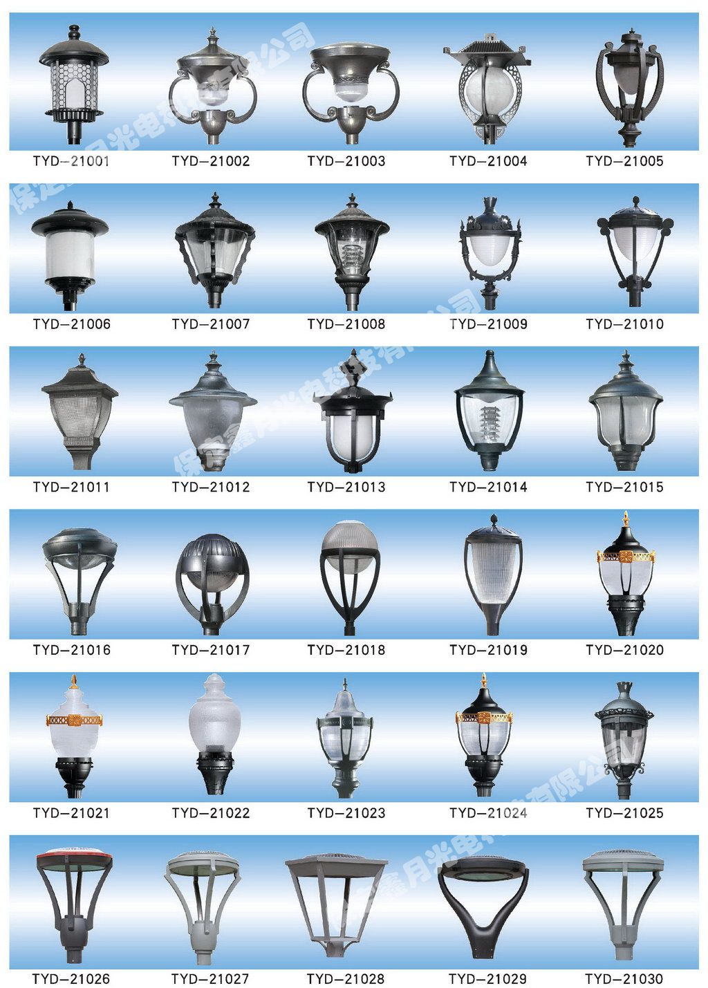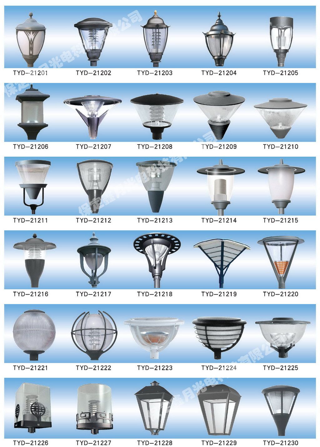 鑫月光電庭院燈燈頭圖集,為您介紹我公司庭院燈燈頭產品畫冊